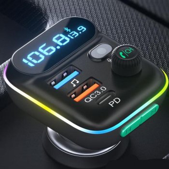 Bluetooth FM Transmitter with Dual USB QC3.0 Fast Charging and Hands-Free Calls