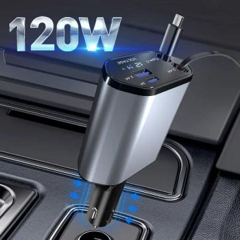 100W Fast Car Charger with 4-in-1 Telescopic Cable & Cigarette Lighter