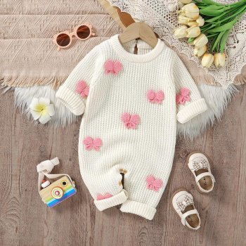 Knitted Baby Romper for Girls – Long Sleeve Autumn Jumpsuit with Cute Bows (0-18M)