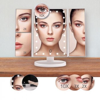 22 LED Light Touch Control Makeup Mirror with 2X/3X Magnifying Tri-Fold Design