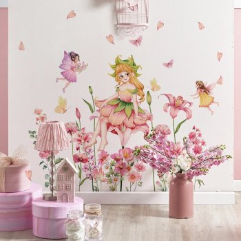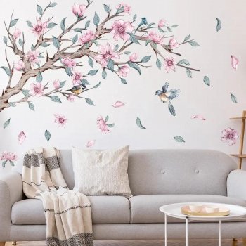 Large Pink Dandelion Hydrangea Flower Butterfly Wall Sticker for Living Room Bedroom Decoration