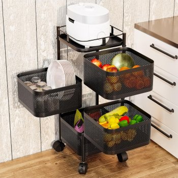 4/5 Tier Rotating Kitchen Storage Rack with Stackable Metal Baskets