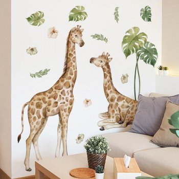 Watercolor Giraffe & Green Plant Wall Stickers for Bedroom & Living Room