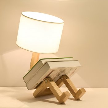 Adjustable Robot-Shaped Wooden Desk Lamp
