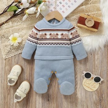 Baby Knitted Romper Jumpsuit for Toddlers, Cute Bear Design, Long Sleeve