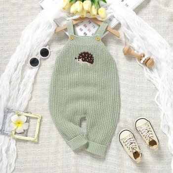 Knitted Baby Romper Sling Jumpsuit with Cute Hedgehog Embroidery for Infants 0-18M