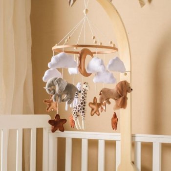 Wooden Baby Crib Mobile with Animal Rattles – Hanging Arm Decoration