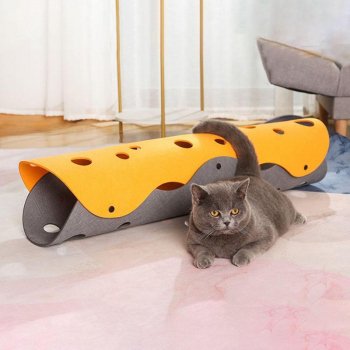 Interactive Felt Cat Tunnel Toy with Pompom & Plush House for Kittens