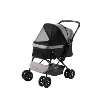 4-Wheel Pet Stroller for Dogs & Cats with Reversible Handle, Storage Basket, and Brakes