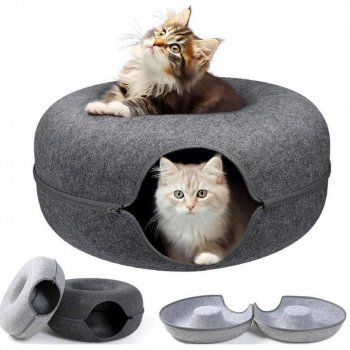 Cozy Donut Cat Bed with Detachable Tunnel