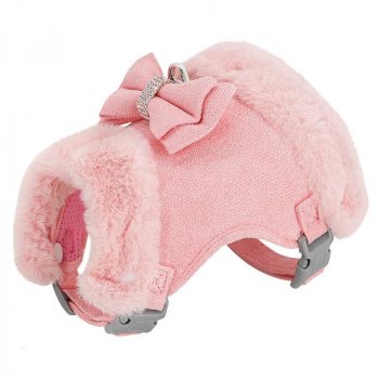 Warm Fur Harness and Leash Set with Rhinestone Bow for Small Dogs and Puppies