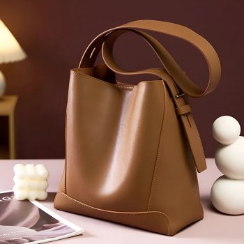 Ladies’ Split Leather Bucket Shoulder Bag with Adjustable Strap