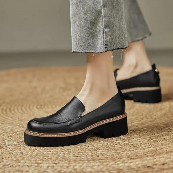 Autumn & Spring Genuine Leather Loafers with Chunky Heel