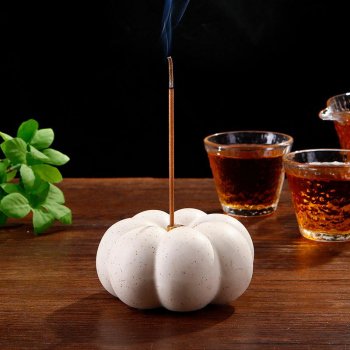 Creative Ceramic Pumpkin Incense Burner with Brass Holder