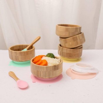 2 Pc Baby Learning Tableware Set with Suction Bowl & Bamboo Spoon