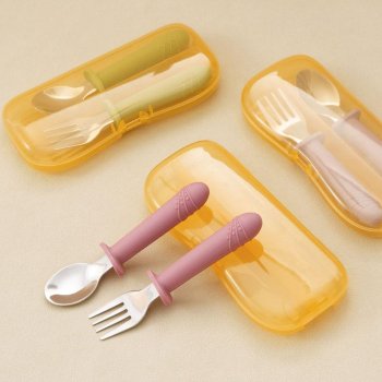 2PCS Baby Silicone Stainless Steel Spoon Fork Set – Safe & Portable Children’s Cutlery