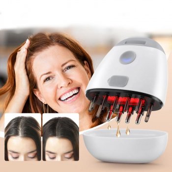 Vibration Head Massager with Red Light Therapy & Hair Growth Applicator Brush