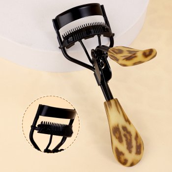 Portable Eyelash Curler with Stainless Steel Leopard Print Handle