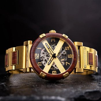 Men’s Automatic Wooden & Metal Mechanical Wristwatch