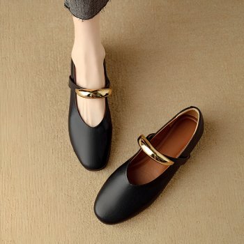 Spring Women’s Low Heel Round Toe Pumps with Metal Detail