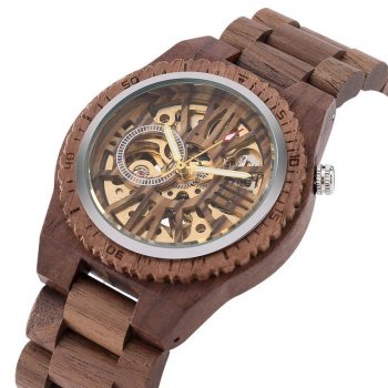 Automatic Wooden Men’s Watch with Natural Walnut Band